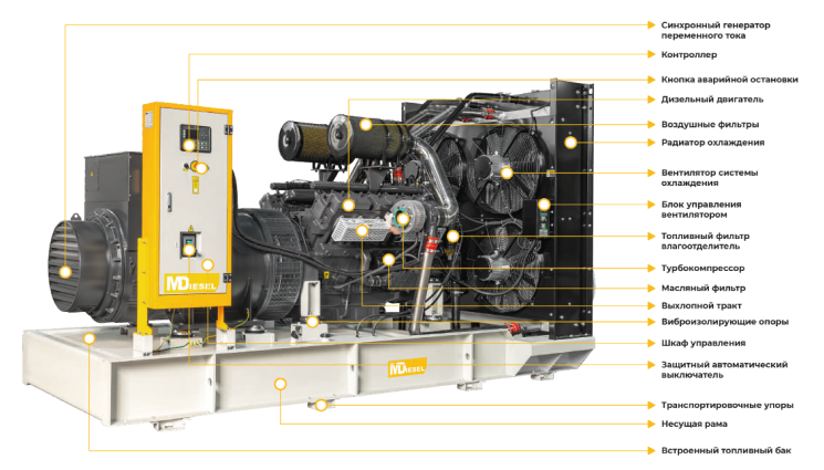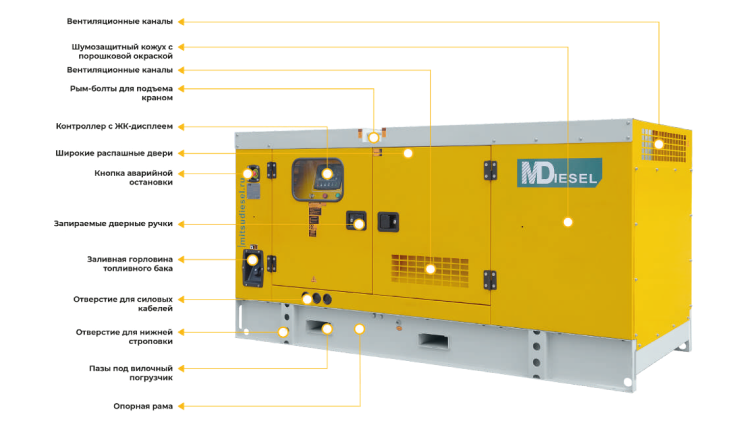 Основу этой модели дизельной электростанции составляет надёжный двигатель Mitsudiesel MD Diesel MDN 30 4L с рабочим объёмом 3,61 л. разработанный специально для использования в составе ДЭС. Выработку качественного электрического тока со стабильными характеристиками обеспечивает синхронный генератор MD-SA-20 (A) , спроектированный с использованием самых современных решений в области электрогенерации.